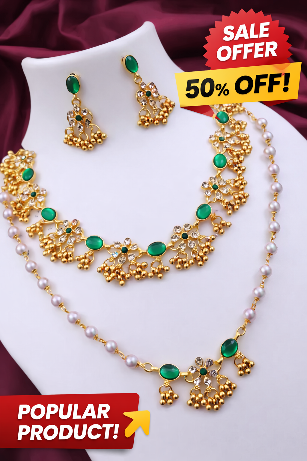 Perfect for weddings, festive occasions, parties, and traditional functions, this necklace set pairs beautifully with sarees, lehengas, and ethnic suits. Lightweight yet grand, it ensures all-day comfort while making you stand out effortlessly.